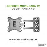 Soporte Móvil: aquí clasifican los que son de 1 brazo y de dos brazos. Este tipo de Soporte móvil permite mayor flexibilidad en la instalación de tu tv. La inclinación y los giros dependerán del tamaño del televisor.